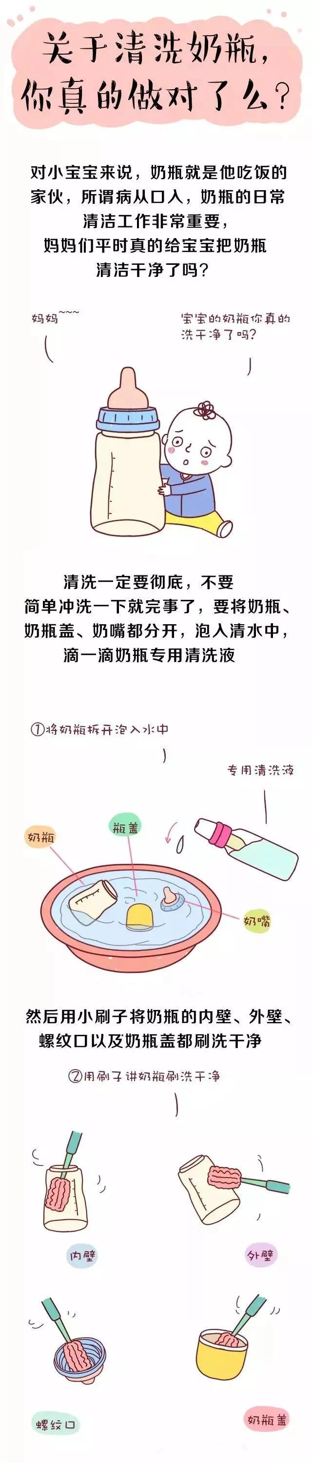 其實,最好不用奶瓶清洗劑等清洗奶瓶,因為化學物質容易黏在奶瓶內壁上,下次喂養(yǎng)時容易一同被嬰兒吞入消化道。