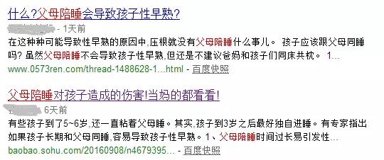 因?yàn)榻陙?,隨便在網(wǎng)上一搜索,就能看到各種有關(guān)嬰幼兒性早熟的報(bào)道,各家媒體大大總在唯恐天下不亂的花樣報(bào)道“天啊!XXX會(huì)導(dǎo)致性早熟!”。